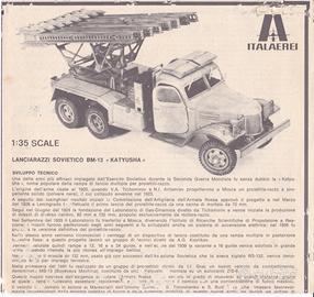 Fogli di istruzioni montaggio scala 1:35 Esci e Italaerei fine anni '70. Quello del BM13 ha piccoli danni sul bordo.