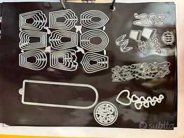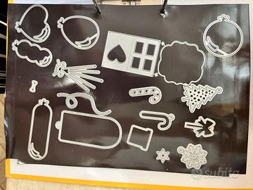 Circa 50 fogli di gomma Eva misti (glitterati, semplici, alcuni già tagliati) + mix di fustelle per big shot (fustellatrice a pressione)