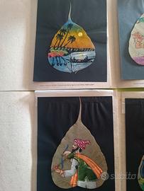 bellissime e grandi foglie indiane di pianta sacra Pipal (ficus religioso) dipinto su olio perfette ancora nella sua carta lavorata indiana ottimo per arredare una parete ..chiedo 250€ tutte e 6...compresa di spedizione grazie