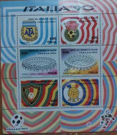 6 foglietti celebrativi coppa del mondo di calcio Italia '90, contenenti ognuno 6 francobolli nuovi del medesimo valore, perfettamente conservati