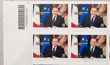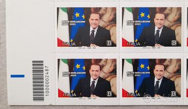 Vendo fogli interi (45 esemplari) del francobollo di Berlusconi, in perfetto stato. Valuto, di caso in caso, se tagliarli per ottenere quartine con e senza codice a barre.