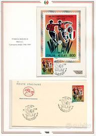 1999 “Milan Campione d’Italia 1998-99” – contiene 1 cartolina affrancata + 1 busta primo giorno + 1 foglietto nuovo con 12 valori.