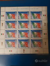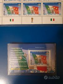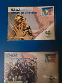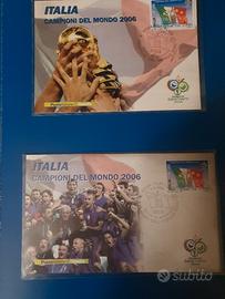 Repubblica Italiana Francobolli Folder Italia Campione del Mondo di Calcio, 1 tessera filatelica con il francobollo da 1.00. 1 cartolina con francobollo ed annullo primo giorno di emissione. 1 busta primo giorno di emissione. 1 minifoglio Italia campione del mondo da 12 francobolli Visionabile in Torino possibilità di spedizione a carico dell'acquirente