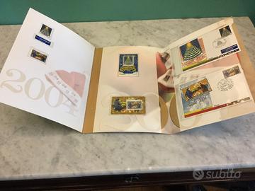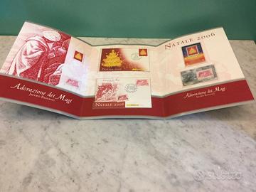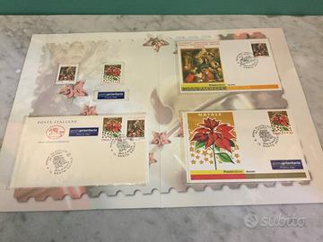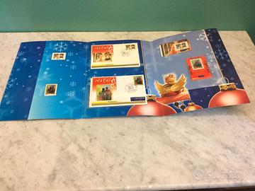 4 Folders con buste affrancate primo giorno di emissione e francobolli, ricorrenza Natale 2003, 2004, 2005 e 2006. In ottimo stato.