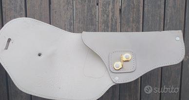 128) Fondina vintage di colore bianco italiana per Beretta, ex dotazione VV.UU. marcata. La fondina non è mai stata usata, è in condizioni ottime con qualche scarso segno di immagazzinaggio. Le dimensioni sono circa cm.13.5 larghezza max. x 20 lunghezza.