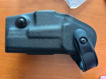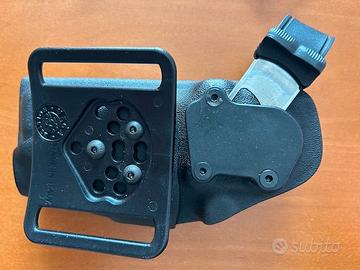 Fondina in polimero Vega Holster, blocco di sicurezza, mai utilizzata completa di accessori idonea per Glock 19 e altri modelli come da catalogo. Vendo a 25 euro trattabili. Vito