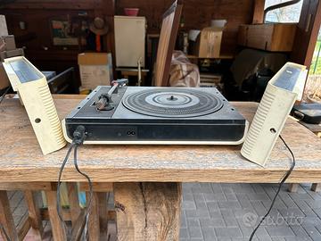 Giradischi vintage con casse collegate nella porzione posteriore come da foto.