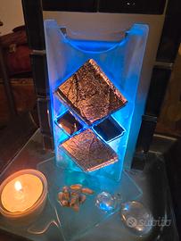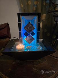 fontana lampada zen anni 80 rilassante. Questo tipo di oggetto d'arredo è progettato per creare un'atmosfera tranquilla e rilassante in casa o in ufficio, grazie al suono dell'acqua che scorre.Questa fontana é utilizzata per ladecorazionee per i presunti benefici delFeng Shui, aiutando a umidificare l'aria e a creare un suono pacifico che favorisce la meditazione e il relax , funzionante e in buone condizioni gli effetti di luce di vari colori fungono da cromoterapia mentre la luce è il profumo della candela aiuta la fase di rilassamento