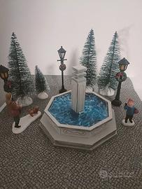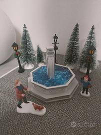 Fontana decorativa in miniatura, perfettamente in scala per villaggi Lemax o Luville. Prodotto Homemade, in legno di pioppo e dipinta a mano.