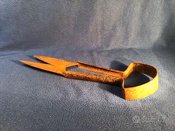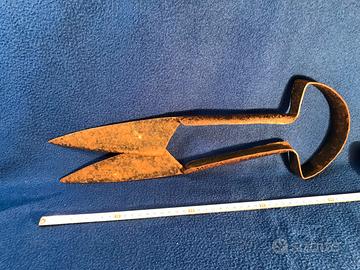 Antico tosa pecore a molla in ferro, l’utensile della prima metà del 900 si presenta in ottimo stato con zone ancora evidenti della brunitura ha sviluppato patine da ossidazione ferrosa come da foto. Misure cm. 44x15x3,5.