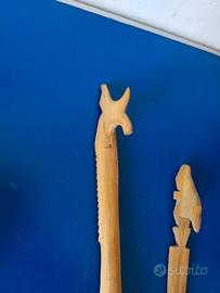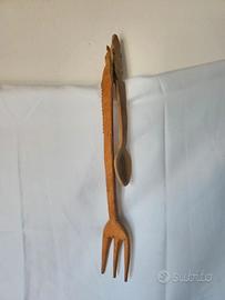 Bellissime posate in legno, intagliate a mano. Sono due pezzi: una forchetta ed un cucchiaio. Realizzate artigianalmente. Ottime condizioni.