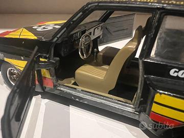 Vendo raro modellino vintage Ford Escort RS 1800 in scala 1:24, prodotto in Italia da Bburago (codice 0118). Il modello riproduce la celebre livrea nera del team Zakspeed/Mampe con il numero di gara 35, protagonista del campionato DRM negli anni '70. Caratteristiche e Condizioni: Stato: Ottime condizioni estetiche, livrea e decalcomanie ben conservate. Meccanica: Ripristinati i blocca-asse delle ruote (problema comune del modello), ora perfettamente funzionali. Completezza: Modellino completo di ogni parte originale (alettone e interni). Funzioni: Porte apribili. Produzione: Made in Italy. Un pezzo iconico per collezionisti di auto storiche Ford e del marchio Bburago.