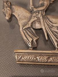 Rara formella che riproduce in argento la statua di Cangrande della Scala conservata presso il museo di Castelvecchio in Verona. Argento 800 su plexiglas. Misura cm. 7x7 oltre la base di appoggio. Euro 120. Sempre disponibile per ulteriori foto o informazioni. Pagamento e spedizione esclusivamente tramite tutto Subito.