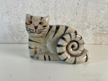 Vendo formella smaltata dipinta a mano a forma di gatto grigio. Condizioni: buone, come da foto Misure gatto seduto (circa): lunghezza 11 cm, larghezza 4 cm, altezza 7 cm Peso: 220 gr Disponibile per spedizione con TuttoSubito o ritiro a mano in zona viale Argonne (Milano). Visita anche le altre mie inserzioni!