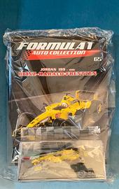 Modellino di auto di Formula 1 Jordan 1999, guidata da Heinz-Harald Frentzen. - Scala 1:43 - Base espositiva inclusa - Vetrina protettiva