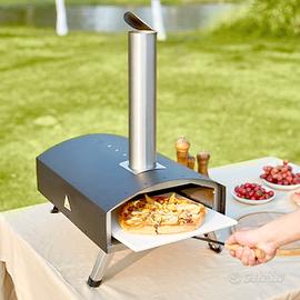 Forno da Esterno Portatile: con un peso di soli 9,6 kg, questo forno per pizza può essere trasportato in giardino, da campeggio, in spiaggia o in qualsiasi luogo di ritrovo all'aperto. Le gambe pieghevoli lo rendono più compatto. Forniamo anche una pala per pellet di legno e una borsa per il trasporto per la comodità.