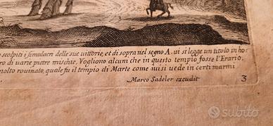 foro romano antica stampa originale 1600 - firmata Sadler con vista sul foro di Roma antica lato Arco Settimio Severo.
