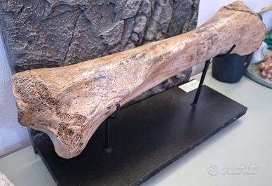 Pezzo raro e autentico: tibia di Mammut lanoso (Mammuthus primigenius), rinvenuta nel permafrost siberiano e datata al Periodo Quaternario (circa 2,5 milioni di anni fa).