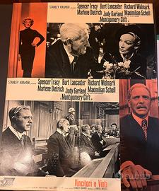 Fotobusta del cinema originale completa Vincitori e vinti. Film di Stanley Kramer con Spencer Tracy, Burt Lancaster, Richard Widmark, Marlene Dietrich, Judy Garland, Maximilian Schell e Montgomery Clift. Serie fotografica smaltata 10 soggetti 50x70 cm in perfette condizioni. United artists. Zincografica Firenze. Non piegate, niente segni di scotch o puntine. Carta con piccoli segni e ingiallimento del tempo. Chiedo 250 euro.