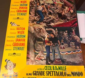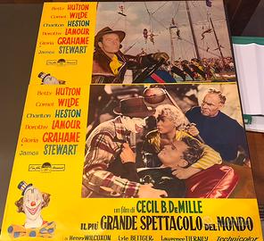Fotobusta del cinema originale completa de Il più grande spettacolo del mondo. Film di Cecil B.DeMille Paramount Technicolor con Betty Hutton, Cornel Wilde, Charlton Heston, Dorothy Lamour, Gloria Grahame e James Stewart. 12 fotografie 50x70 cm in tricromia in perfette condizioni (niente pieghe o segni di puntine/scotch), agarrotocalcio Roma 1962. Con contenitore in cartavelina originale. Chiedo 150 euro.