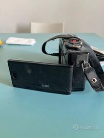 L'oggetto nell'immagine è una fotocamera a pellicola compatta Ricoh 35 EFS. Questa fotocamera vintage, introdotta nei primi anni '80, è nota per la sua semplicità e facilità d'uso, rendendola una scelta popolare per i fotografi amatoriali. È una fotocamera a pellicola da 35 mm con un obiettivo fisso da 40 mm f/2.8. Presenta un flash integrato (Electronic Flash System, EFS) e un autoscatto. L'esposizione è automatica, controllata da un esposimetro CdS, con una singola velocità dell'otturatore di 1/125 di secondo. Utilizza batterie separate per l'esposimetro (1.35v) e per il flash (una singola pila AA).