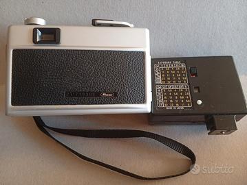 Fotocamera analogica Ricoh 500G modello vintage anni 70 con messa a fuoco a telemetro (Rangefinder) obiettivo Rikenon 40 mm. f/2.8. flash Hanimex x 333 con attacco a slitta entrambi completi di custodia e libretto istruzioni