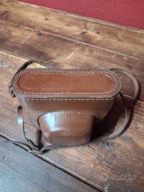 Inclusa custodia originale in cuoio marrone con tracolla, come da foto.