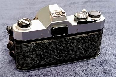 Fotocamera analogica reflex interamente meccanica e metallica Asahi Pentax K1000. Apparecchio formato Leica 35 mm, con tracolla strap originale Pentax, e con 3 obiettivi intercambiabili: SMC-Pentax-M 1:2, f=50 mm con coperchietto anteriore originale Pentax / MC-Hanimex Automatic Zoom C-Macro 1:3,5-4,5, f=35-70 mm, Ø 55 mm, con coperchietto posteriore / Vivitar MC Macro Focusing Zoom 1:3,5-5,6, f= 28-210 mm, Ø72 mm, con coperchietti originali anteriore e posteriore. Un anello adattatore per trasformare l’attacco a baionetta Pentax in attacco filettato M42, e un filtro UV Toshiba Ø49 mm con leggera ammaccatura sul bordo esterno. Apparecchi usati, non testati ma apparentemente funzionanti e in ottime condizioni. La sola fotocamera con l’obiettivo 50 mm: 130 Euro / Fotocamera con i 3 obiettivi in blocco: 250 Euro.