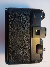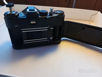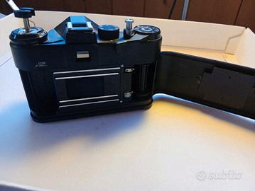 una Zenit ET, un modello di fotocamera reflex analogica da 35mm prodotta in Unione Sovietica.È nota per la sua costruzione robusta e interamente meccanica.