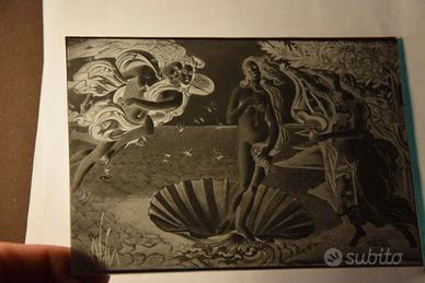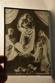 7 negativi in vetro del 1897 raffiguranti opere importanti del Rinascimento conservati in musei italiani. In particolar modo madonne di Raffaello e la nascita di Venere del Botticelli. I vetri hanno il loro taglio originale, con qualche difetto o piccolo graffio dato dall’età e dalla fragilità del materiale.
