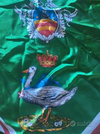 Foulard con raffigurata iconografia araldica con stile e colori della Nobile Contrada dell'Oca di Siena. Presente una leggera colorazione rosa come in foto.