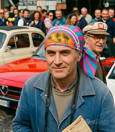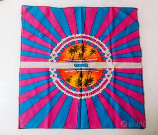 Foulard Bandana Vintage FIAT PANDA anni '80 - "Questo Incredibile Mondo Panda" - RARO. Vendo iconico foulard originale Fiat Panda risalente agli anni '80, un vero pezzo di storia del merchandising gadget automobilistico italiano. Il foulard è di tessuto e presenta la celebre grafica della campagna pubblicitaria "Questo incredibile mondo Panda", caratterizzata da un vivace motivo a raggiera nei colori cult dell'epoca: fucsia neon e azzurro, al centro, un'illustrazione tropicale con palme e windsurf che incarna perfettamente lo spirito di libertà e avventura della Panda originale dell'epoca. La grafica richiama a gran voce gli anni 80 ed il mondo musicale waporwave. Epoca: Anni '80 (Originale dell'epoca, NO riproduzione). Grafica: Colori ancora vividi e brillanti, tessuto ben conservato. L'oggetto è in buone condizioni generali. Segnalo, per massima correttezza, un piccolo strappo pulito (visibile in foto) in un punto del tessuto. Il taglio è netto e non manca materiale, il che lo rende facilmente riparabile con un piccolo rammendo o praticamente invisibile se incorniciato. Non ho voluto effettuare la riparazione per non compromettere o alterare il tessuto vintage, lasciando il restauro a chi lo acquisterà. Perfetto per collezionisti di memorabilia Fiat, proprietari di Panda d'epoca , da tenere sul cruscotto o sulla cappelliera ai raduni, o indossato in stile bandana come mostrato in foto o come pezzo d'arredo vintage, incorniciato. RARO gadget automobilistico, impossibile trovarne un altro uguale . Consegna su Roma o spedizione.