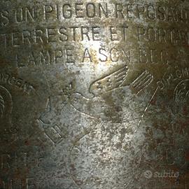 Lampada a olio francese in metallo Pigeon 1885 , con finiture invecchiate e un design classico.