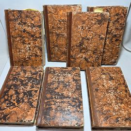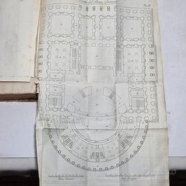 TITOLO: Opere complete di Francesco Milizia Riguardanti le Belle Arti - Tomo I - II - III - VI - VII - VIII - IX Bologna 1826/27 Stamperia Cardinali E Frulli. (Assenti Tomo IV - V) Misure: 21.5 x 14 x 23 cm Ca. complessivi. Coperte in mezza pelle con titolo, numerazione e fregi in oro al dorso. Piatti marmorizzati con angoli in pergamena, perdite di carta alle unghie e abrasioni, tagli parzialmente in barbe. TOMO I: 1 f.b. + [2], XXXIV, 484, [2] + 1 f.b. Opuscoli Diversi di F. Milizia Riguardanti Le Belle Arti 1826. Pagine con fioriture e rare bruniture, 6 tavole ripiegate alla fine, le tavole presentano lievi difetti, come strappetti e arricciature. TOMO II-III Tomo 2: 1 f.b. + [4], XIX, [1], 368 + 1 f.b. ;Tomo 3: 1 f.b. + 525, [3] + 1 f.b. Pagine con fioriture e rare bruniture TOMO VI - VII - VIII: 1 f.b. + 452 + 1 f.b. ; 1 f.b. 509, [3] + 1 f.b.; 1 f.b.+ 431 + 1 f.b. Principi di Architettura Civile di F. Milizia. broniture e fioriture. Rispettivamente con 10 tavole il VI (senza difetti), 1 tavola nel testo + 12 tavole alla fine il VII ( Tavola X con mancanze di carta, tavola IX con restauro), 1 tavola nel testo + 12 tavole alla fine il VIII ( tavole in buono stato qualche arricciamento ai bordi). TOMO IX: 1 f.b. + 366 [2] + 1 f.b. Saggio di Architettura civile e lettere riguardanti le belle arti di Francesco Milizia. Fioriture sparse. I tomi si trovano nel complesso in più che buono stato di conservazione, i tomi trattano argomenti a se stanti e tra di loro e sono completi. In ciascun volume il frontespizio generale precede quello particolare. libri antichi libro antico libri rari libri storici libri da collezione libro da collezione antiquariato libri antiquariato collezionismo librario arte antica cultura antica vendita libri antichi antique books ancient book rare books