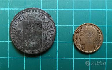 Francia Prima Repubblica (Rivoluzione) 1 soldo 1793 Terza Repubblica (II Guerra Mondiale) 50 centimes 1939