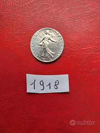 Francia Rara moneta d'argento da 50 centesimi del 1918 condizioni FDC come da foto