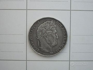 * 5 Franchi Luigi Filippo Re di Francia Anno 1844 Zecca 'W' Citta' di Lilla (Lille)