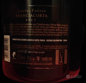 Due bottiglie Franciacorta Brut Castel Faglia con uve Chardonnay e pinot nero, tappo in sughero For 51, sboccatura 2025,