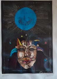 Incisione all' acquaforte acquatinta in copia unica colorata a mano. Lastra cm 49x34, foglio cm 70x50. Opera in Archivio Gentilini ( Roma).