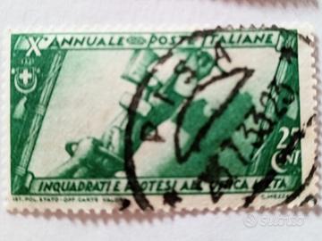 set. di 6 . sei . francobolli usati a memoria della decima annualita' delle poste italiane . anno 1932 e 1933 . francobolli da 0,50 lire a 30 centesimi . set bellissimo . vendita congiunta o disgiunta . prezzo a richiesta