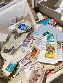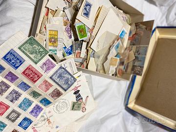 Stock di francobolli (200? 300?) collezionati da me fino a poco più di una quarantina d’anni fa, provenienti da tutto il mondo. All’insieme appartengono 3 raccoglitori, riempiti ciascuno per meno della metà, e una scatola da pigiama piena di francobolli mai più catalogati.