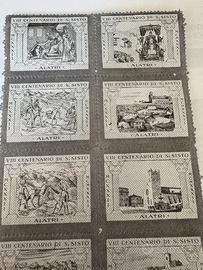N.12 francobolli nuovi chiudilettera Ristampa VIII Centenario San Sisto I Alatri in cui è raffigurata la storia della traslazione ad Alatri delle reliquie del Santo Patrono