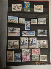 Lotto di francobolli di parecchie nazioni con rappresentati aerei. Tutti i francobolli sono in un album con 30 pagine (60 facciate) di dimensione 30 x 23 x 5 compreso nell'offerta.