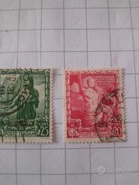 due francobolli del 1937/38 usati ,il primo raffigura Dante Alighieri,il secondo raffigura l'impero fascista