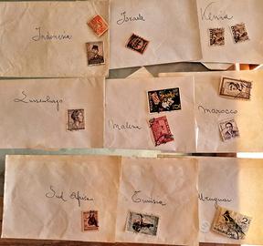 Francobolli di 10 paesi INDONESIA ISRAELE KENIALUSSEMBURGO MALESIA MAROCCO PERU SUDAFRICA TUNISIA URUGUAY. 1 PEZZO O 2 PER OGNI PAESE. Mettero' altri annunci e possiamo unire piuù oggetti dei vari annunci