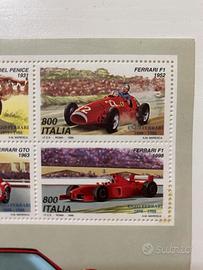 Foglio di francobolli commemorativi dedicati a Enzo Ferrari.