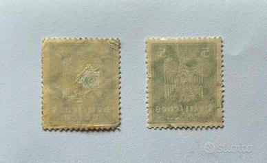Francobolli Germania Reich 1924 Aquila del Reich 5 Colore verde N.2 francobolli timbrati