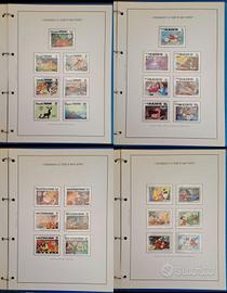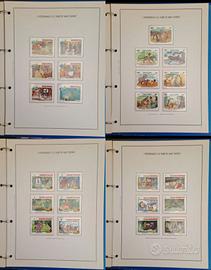 ORIGINALE Raccoglitore blu edizione Bolaffi dei primi anni '80 composto da 22 pagine in cartoncino con frontespizio raffigurante Topolino e 132 francobolli nuovi di diversi Paesi distribuiti in 21 pagine rappresentanti le seguenti favole e personaggi di Walt Disney: