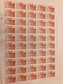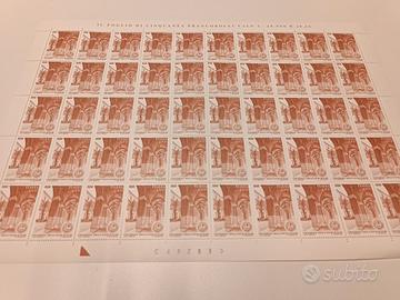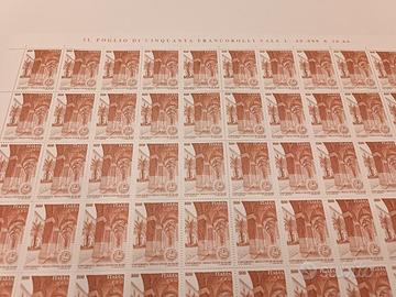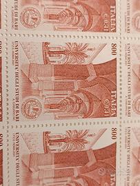 francobolli Italia 2001 lire 800 euro 0,41 università degli studi di Bari via, foglio da 50 francobolli.