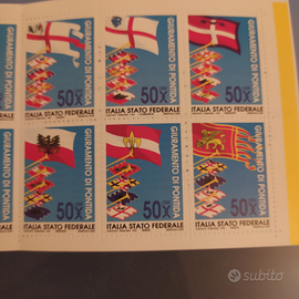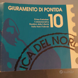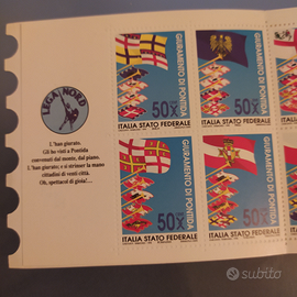 Foglietto di 10 francobolli giuramento di Pontida, prima emissione commemorativa bandiere della libertà Italia stato federale in perfette condizioni